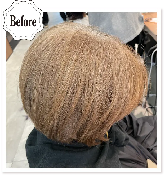 エアータッチでブリーチ後、7/89で間塗りをして影をつくりました。オンカラーは根元を6/89、中間~毛先は6/89をクリアでアレンジ。リュクスカラーなら使用シェード1色ですべてデザインできるのが魅力的です。