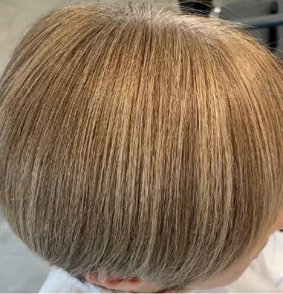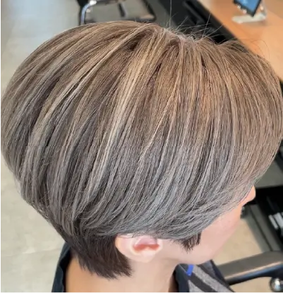 リュクスグレイ単色のコントラストを維持した発色具合と白髪の染まり具合を見てください!