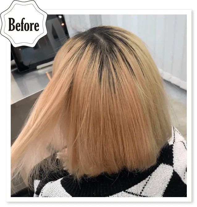褪色はホワイトブロンド。紫味を少し入れ、仕上がりはホワイト系。残留が少しあって、ホワイト系に持っていきたい方にオススメです。