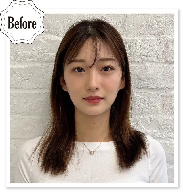 ヘアカラーの色素がやわらかいダイヤモンドベージュにレイヤーカットをしっかり入れ、よりベージュのコントラストが分かるヘアに