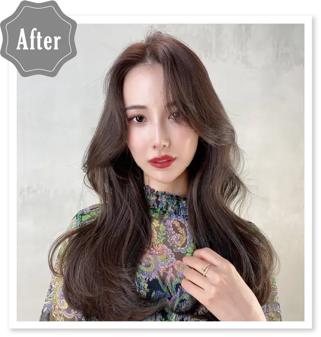 韓国ヘアに必須な毛流れとくびれのあるスタイリングにしました。