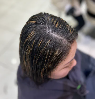 エイジング世代であることと、縮毛矯正をかけているので、ブロンダープレックスHを3%で使用することがマストです。