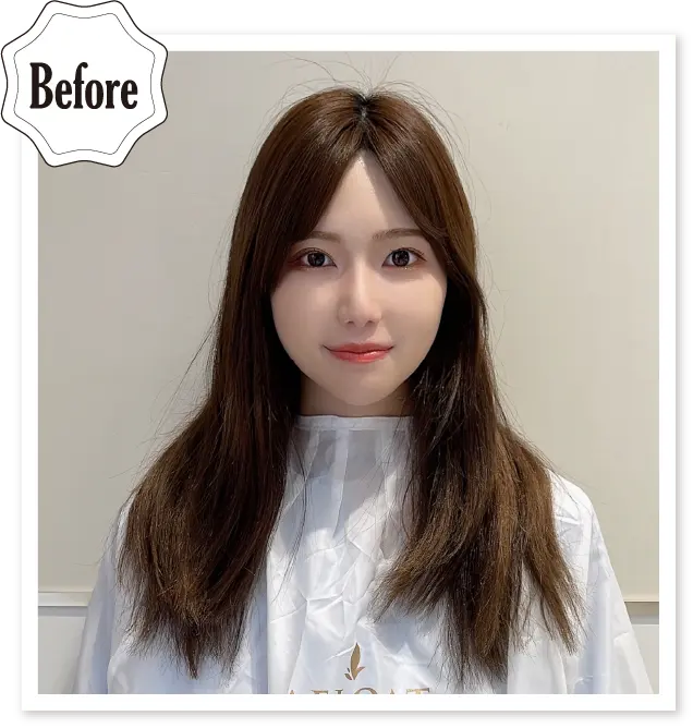 韓国っぽさを出す上で抜けの良さと軽さを出すために顔周りにレイヤーを入れることで/81(プラチナレジェンド)ならではの透明感と相性◎