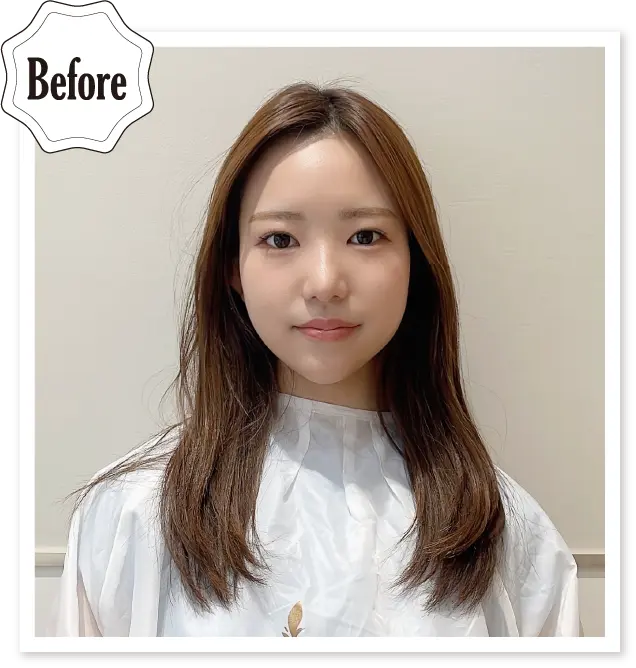 顔周りはハイレイヤーで全体に馴染むようにしてあげることで全体の面な感じがより綺麗に。前髪を抜けあるシースルーで作る事で全体的に柔らかい雰囲気になるので/91(ヴェールグレイ)との相性抜群◎