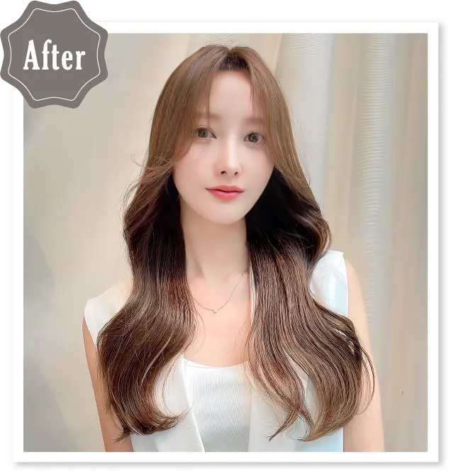 上品なベージュ系韓国カラーは/91(ヴェールグレイ)がオススメ。お客様のリップの色味でカラーリングのベースを決めると似合わせやすいです。艶のあるくびれヘアが韓国っぽさを。ベージュ系カラーを綺麗に見せるのは面を作ってあげると◎