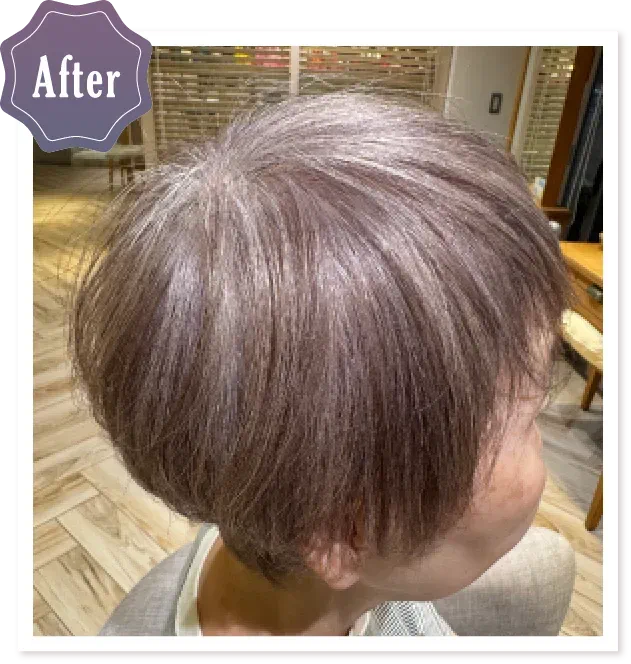 白髪への変化に対するデザイン提案でお客様にも楽しんでいただき、周りの方からも褒めてもらえるスタイルづくりを意識しています