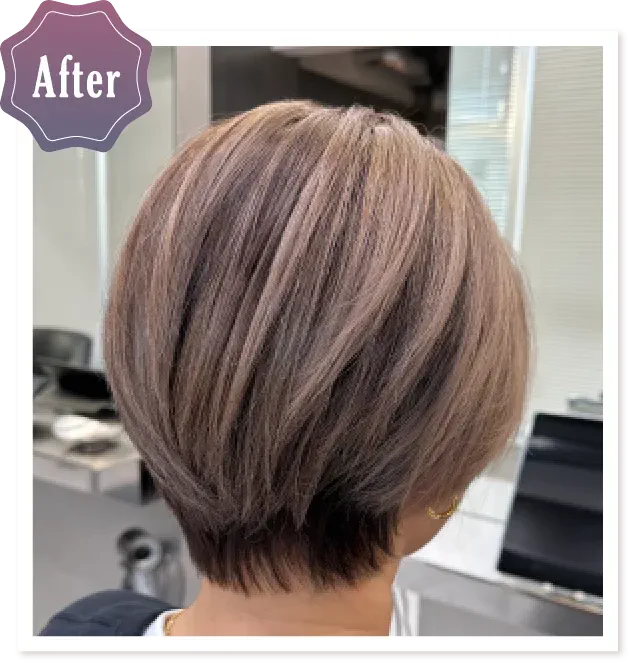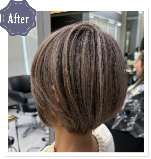 白髪、地毛、既染部の馴染みと艶感