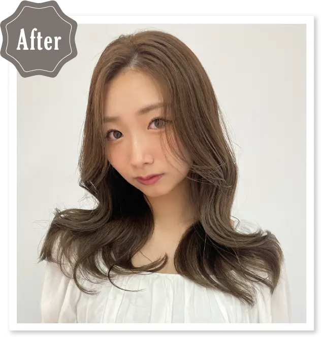 深めの赤で大人の上品さを引き出すようにしています。赤すぎるとやりすぎてしまうので/00(ネイチャーコントロール)とアレンジすることでやりすぎない赤みブラウンを表現できます。