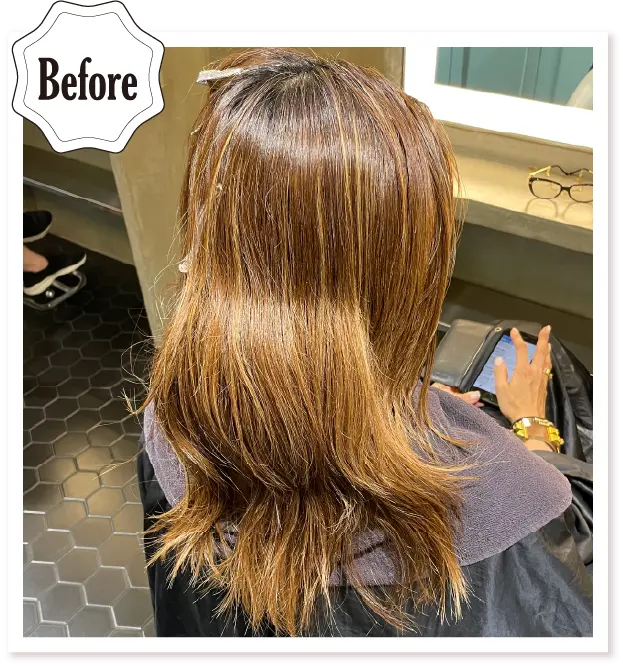 グラデーションにしておく事で次回来店時にハイライトが浮き出でて白髪をブレンドしてくれるので、黒髪が伸びた感じが気にならないようにしています。