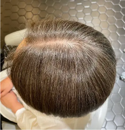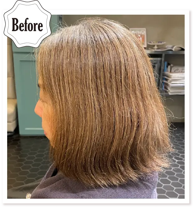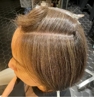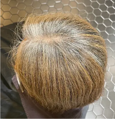 前回ハイライトとリュクスグレイで白髪活かしをしたお客様のリターンです。白髪は,既にぼけているので前回に引き続きリュクスグレイをベースにしてアレンジ