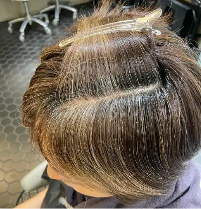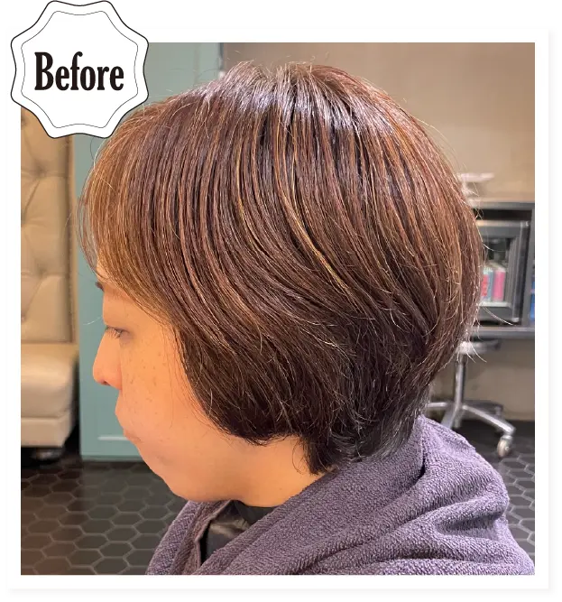 白髪の染まり方と全体のブレンド感がポイントです