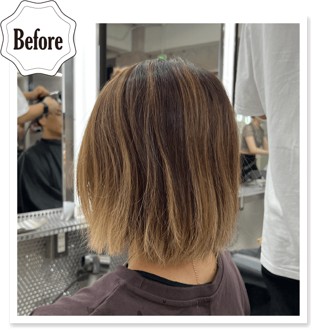 トーンを暗くしすぎることなく黄ばみとギラつきを抑えてくれるブリーチオンカラーにぴったりな薬剤