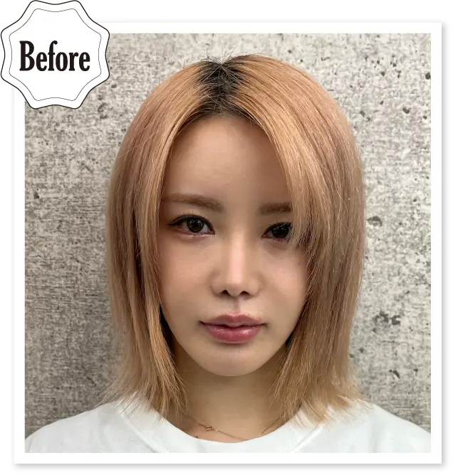 /91(ヴェールグレイ)でムラ補正とくすみ感を入れつつ/96(ヴェールバイオレット)で黄ばみを抑えます。この2色でつくるお肌も白く見えるし色落ちもめちゃくちゃ綺麗。切りっぱなしボブに顔周りのハッシュカットで一味違うお洒落感と抜け感を出し巻かなくても簡単に仕上がるデザイン。家での再現性が一気に高くなるスタイルです。