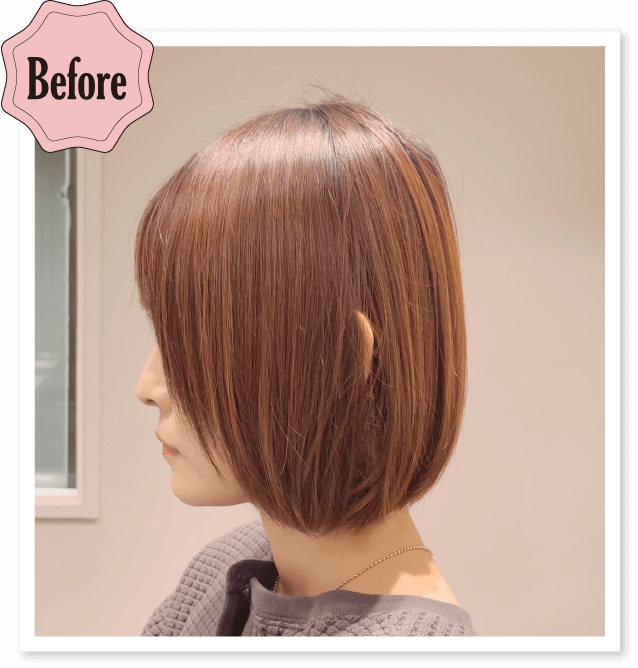 根元が白髪ありでしたが、カシスで馴染ませながら明度は10~11明度くらいに。素敵に過ごせる大人向けカラーです