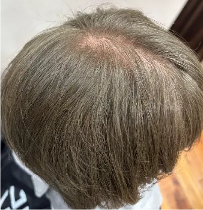 リュクスグレイを3%で使用すると黒髪は明るくしないで白髪を染められます。既染毛の色なじみも良いですが、毛先に明るさを残す場合は根元のみの使用もおすすめです