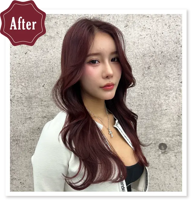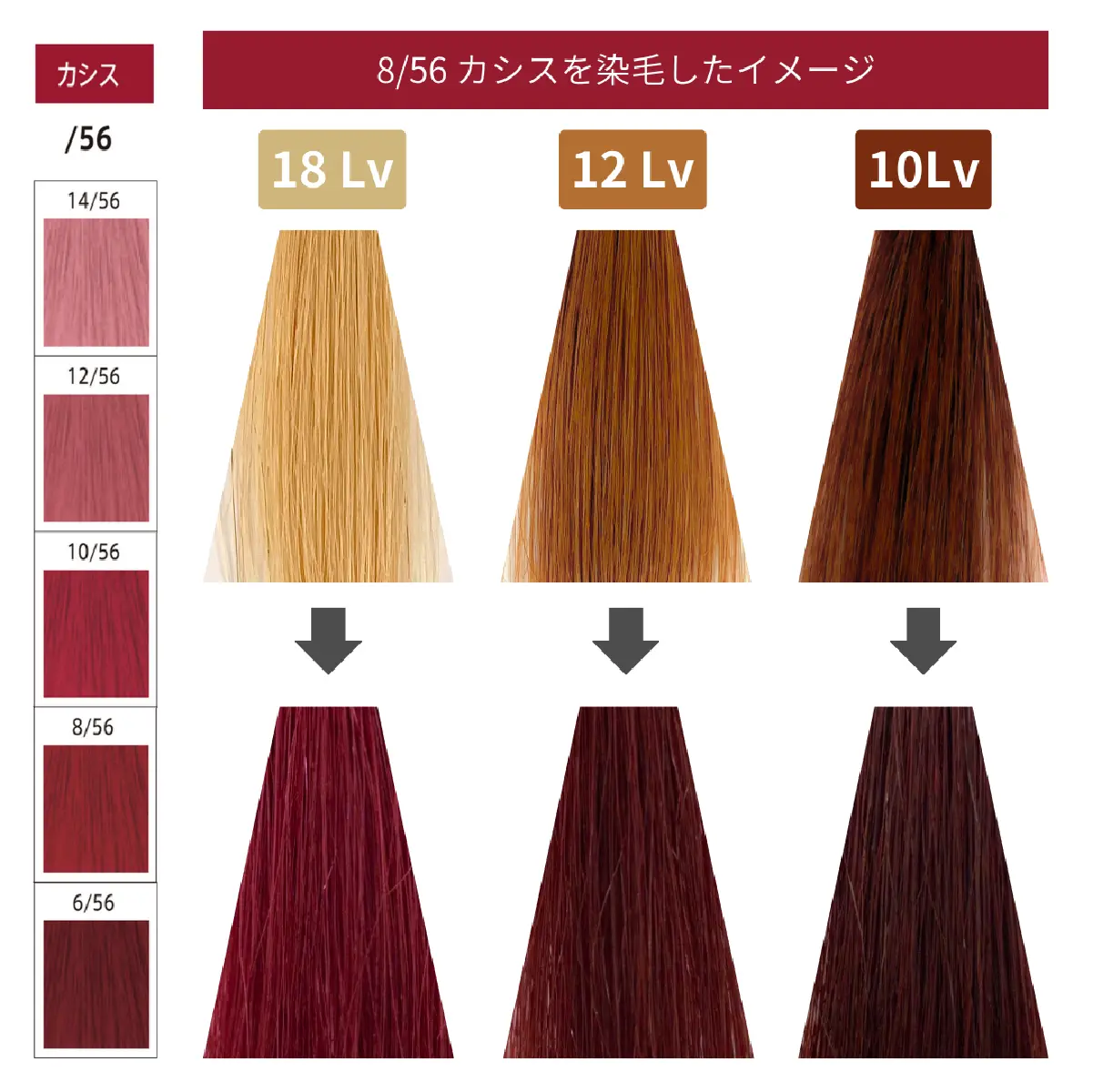 カシスに含まれるブルーパープルがイエロー、オレンジを抑えてまろやかで深みのあるカシスになります。ブリーチオンカラーでとろみを感じるまろやかなピンク~レッド系のカラーにオススメです。