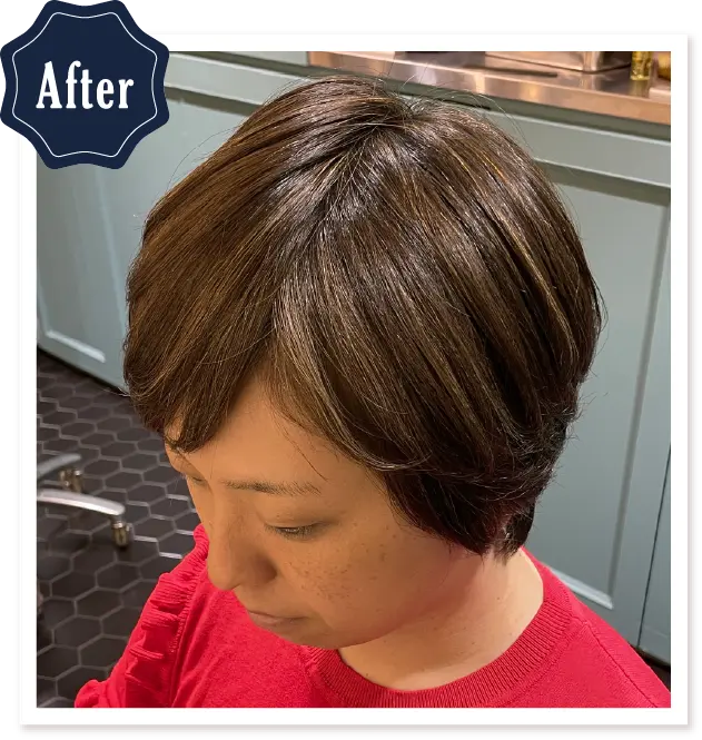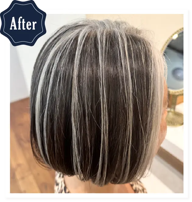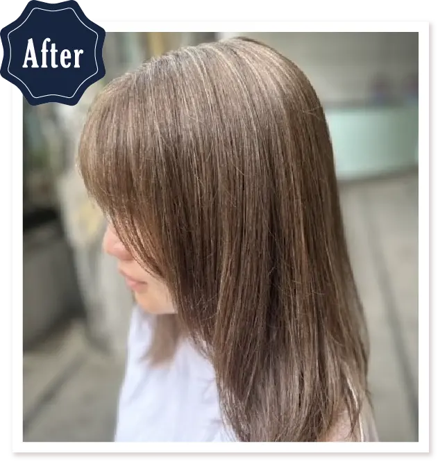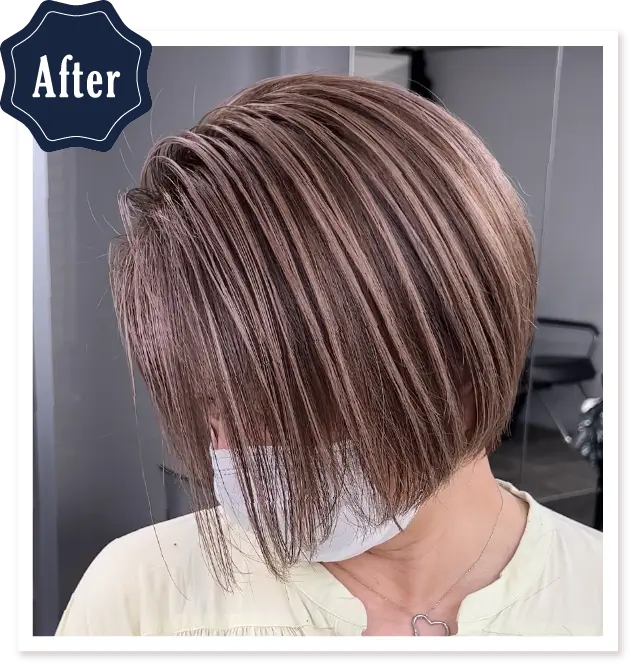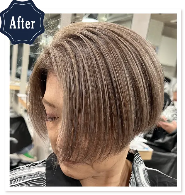 白髪もファッションカラーのような美しい仕上がりに。自然なブラウンヘアやダブルカラーのオンカラーにも。