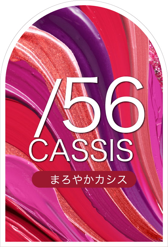 不動の人気カラーピンクから登場する/56 カシスは、『赤味の深いピンク』です。カシスは、ありそうでなかった色、新しいピンク系の幅をひろげてくれるシェードです。