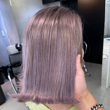 アンダーのイエロー / オレンジを抑える補色がないので、グレーがくすみを与えてマット系ブロンドになります。