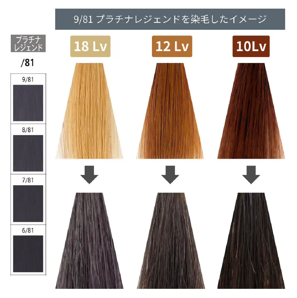 独特の色表現で、主役から補正までこなす優秀カラー。あらゆる髪質やコンディションの髪にやわらかい髪質と輝きを与え、明暗に関わらず透明感のある髪色に。トーンダウンやブリーチオン、白髪素材など幅広いシーンでお使いいただけます。