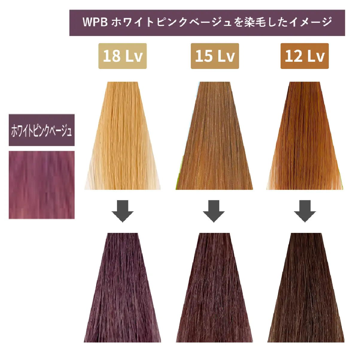 ピンク系で作るミルクティーの鉄板カラー。アンダーのイエローを抑えながら、ピンクでつくる柔らかい白っぽさが魅力。ブリーチオンカラー用のシェードで、肌なじみがよく透明感のある仕上がりに。コントラストを活かしたナチュラルなハイライトや初めてのブリーチオンカラーにもオススメです。