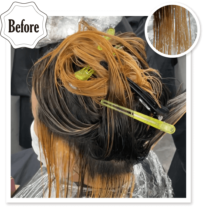 抜けムラがあるブリーチ毛にもピンク補正でなじませる