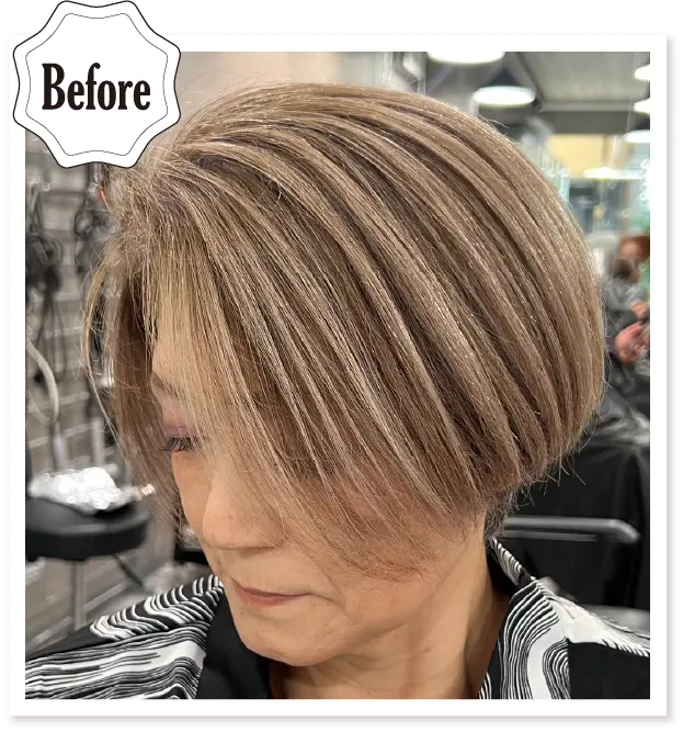 リターンの方には,クリアを使う事で暗い部分のリフトを抑えながら,褪色して抜けた明るい筋の部分に色が入る選定です。2回目も綺麗に染まり上がります。