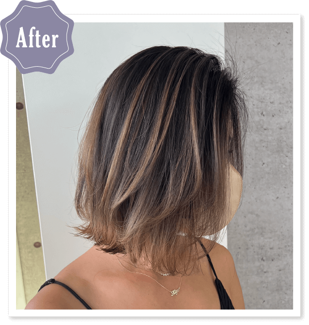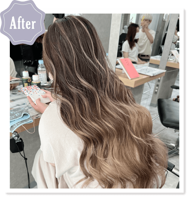 ワンブリーチでコントラストをおさえた自然なバレイヤージュ